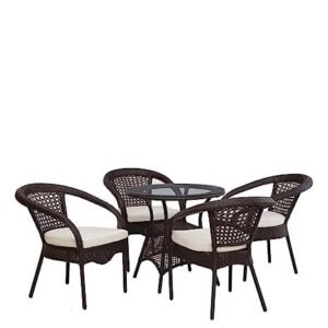 The Garden IIOF D-8 Patio brown Seating Chair and Table Set is a stylish and functional furniture set, perfect for enhancing your outdoor living space. This set includes 4 sleek black chairs and 1 glass-topped table, making it ideal for patios, balconies, gardens, or any outdoor area where comfort and elegance are key.