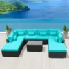 IIOF Outdoor 8 Seater Black Rattan Sectional Sofa Set with Red Cushions