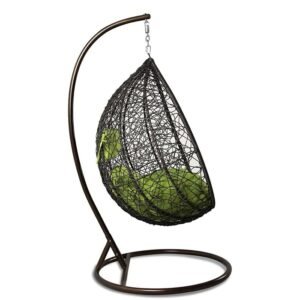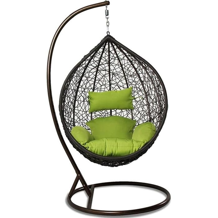 IIOF Outdoor/Indoor/Balcony/Garden/Patio Swing Chair with Stand and Cushion Set (Black and Green)