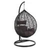 The swing chair is the perfect spot to catch up on some reading or to watch the sun set. Suitable for a patio, garden or terrace or even indoors. The swing and the cushion fabric are weather-proof, so you can leave it outside and forget it. Made from rattan. Water-resistant cushion included. Cushion material: 100 percent polyester. Recommended load: Max. 150kg.
