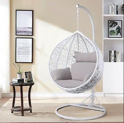 IIOF Indoor/Outdoor Hanging Swing Chair with Stand and Cushion (white & grey) IIOF Indoor/Outdoor Hanging Swing Chair with Stand and Cushion (white & grey)